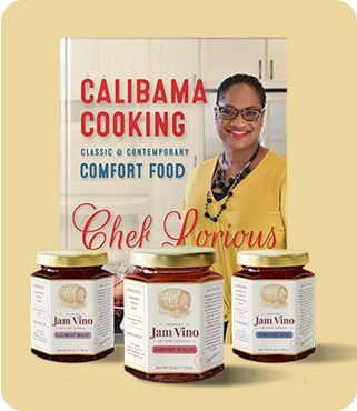 Introducing the Chef Lorious Bundle – a culinary treasure trove! This perfect kitchen solution combines the "Calibama Cooking" cookbook with a Jam Vino 3-pack, making it an ideal gift as well.